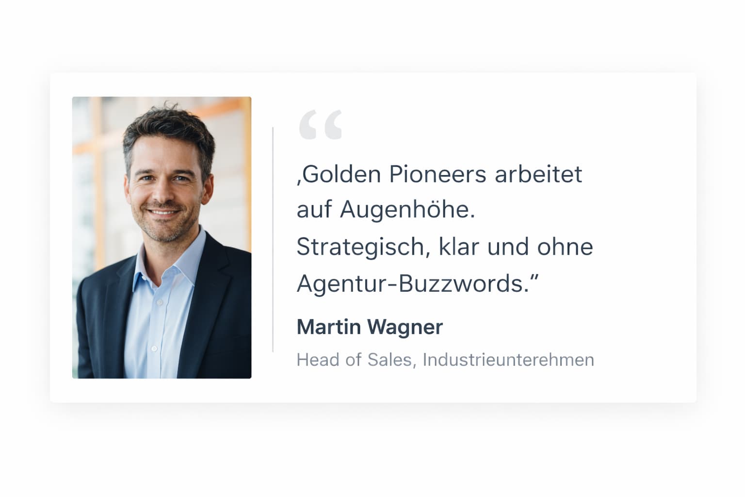 GoldenPioneers begleitet Unternehmen im DACH Raum als externer Partner für Digital Sales Management und Marketing. Wir unterstützen Geschäftsführungen und Führungsteams bei der Entwicklung skalierbarer Vertriebsprozesse, der qualifizierten Leadgenerierung und der strukturierten Digitalisierung des gesamten Sales Cycles. Unser Ansatz verbindet operatives Digital Sales Management mit klarer Marketingstrategie, um nachhaltiges Wachstum und messbare Performance zu erzielen. Unternehmen, die externes Digital Sales Management in DACH suchen, finden in GoldenPioneers einen verlässlichen, diskreten und strategischen Partner.